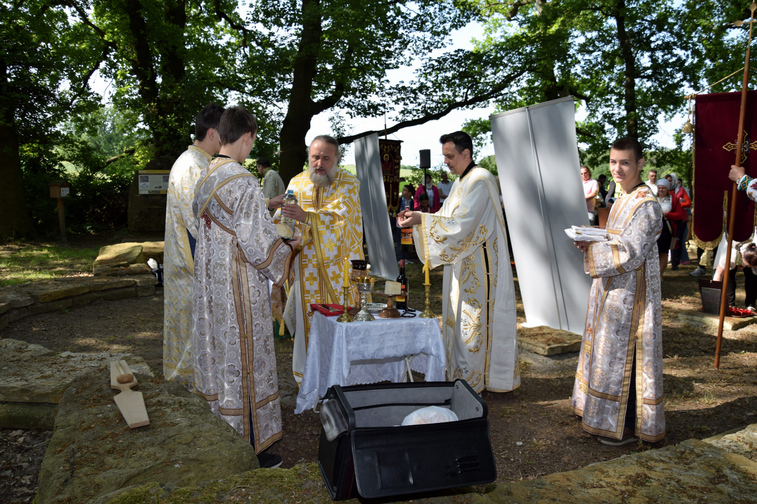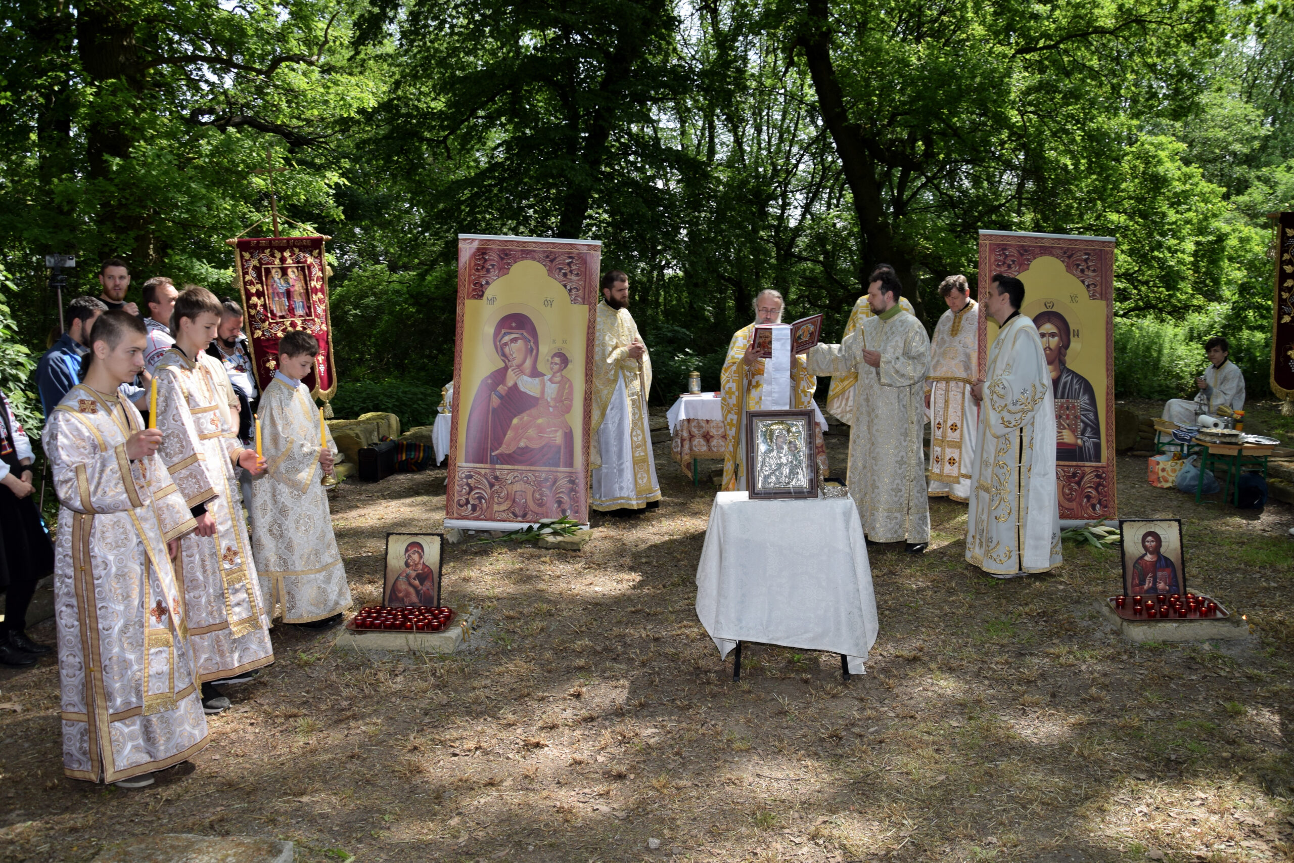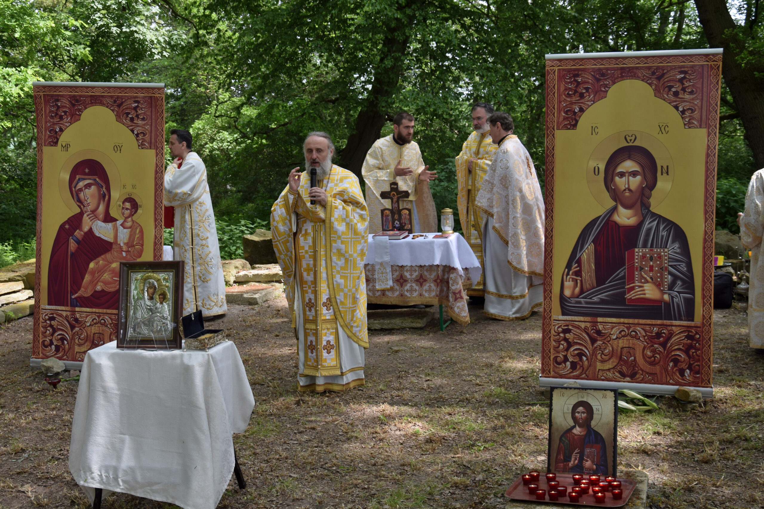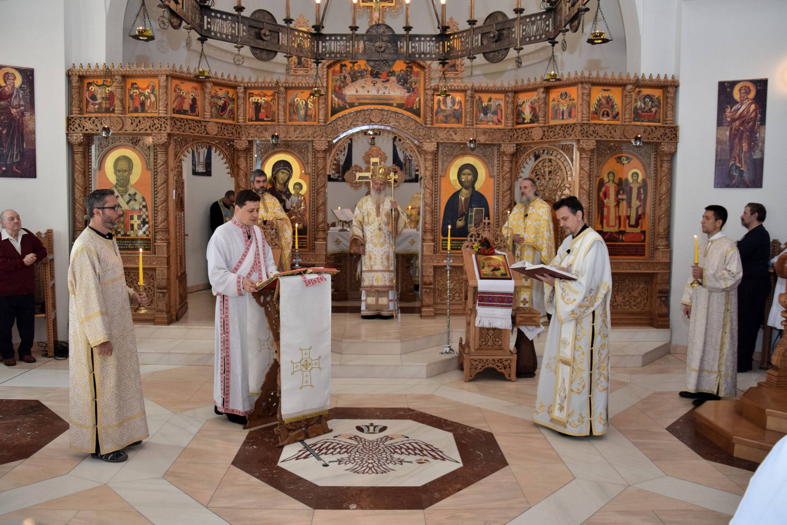 Sfânta Liturghie Arhierească a fost slujită împreună cu Părintele Paroh Clement Lodroman, Pr. Ioan Bogdan Negru (Parohia Română ”Sfinții Arhangheli Mihail și Gavriil” din Berlin), Pr. Ionuț Dragoș Manu (Parohia „Sfinții Împărați Constantin și Elena” din Berlin), Pr. Ionuț Bancilă (Parohia Ortodoxă Română „Sf. Paisie de la Neamț“, Potsdam-Golm), Pr. Diacon Iustin Bica (Parohia Română ”Sfinții Arhangheli Mihail și Gavriil” din Berlin) și Pr. Diacon Vasile Rusu (Parohia „Sfinții Împărați Constantin și Elena” din Berlin). La încheierea Sfintei Liturghii, Înaltpreasfinția Sa Ioan a rostit în fața românilor din Berlin, un cuvânt de învățătură în cadrul căruia a vorbit despre purtarea de grijă a lui Dumnezeu pentru sufletul fiecărui om.
