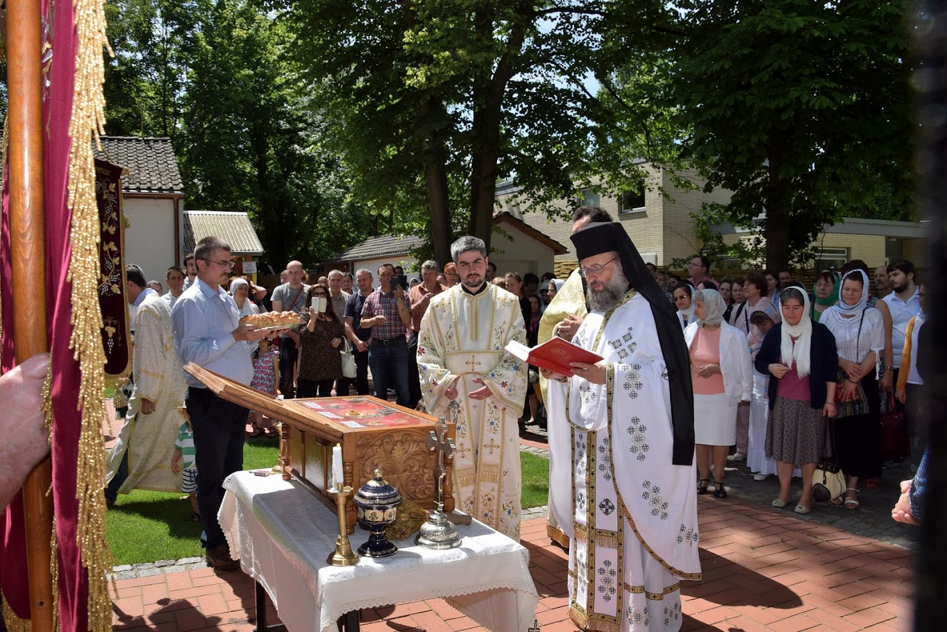 Duminica 11.06.2017, de Sărbătoarea Tuturor Sfinților, la biserica noastră a avut loc, după Sfânta Liturghie, procesiunea cu Sfintele Moaşte . În Paraclisul „Sf. Cuvioasă Parascheva” a bisericii din Berlin se află Veşmântul cu care au fost înfăşurate Sfintele Moaşte ale Prea Cuvioasei Maicei noastre Parascheva de la Iaşi, împreună cu părticele din Sfintele Moaşte ale Sfântului Mare Mucenic şi Tămăduitor Pantelimon şi din ale Sfinţilor Mucenici Epictet şi Astion, martirizaţi la Halmyris, în pământul Dobrogei de astăzi.