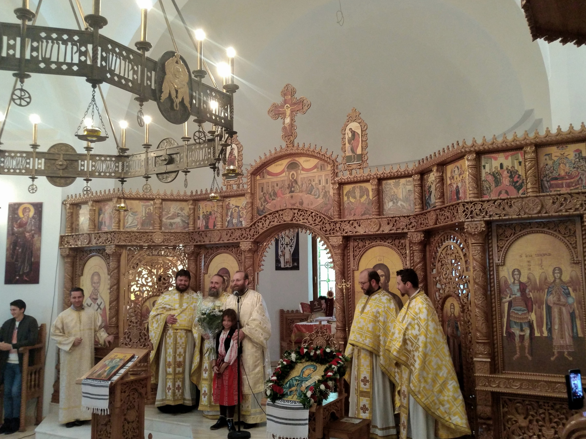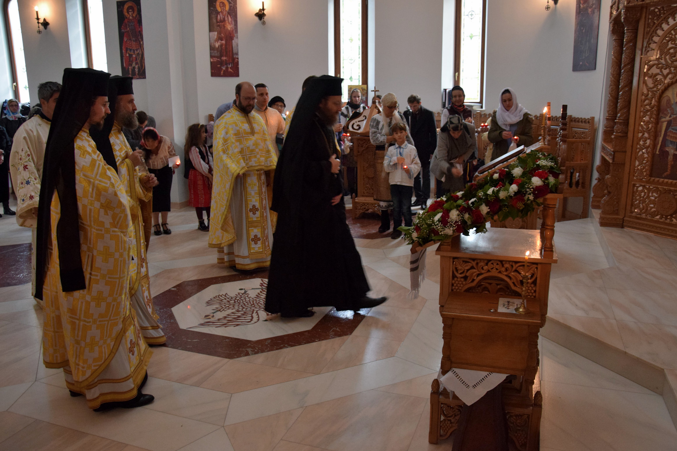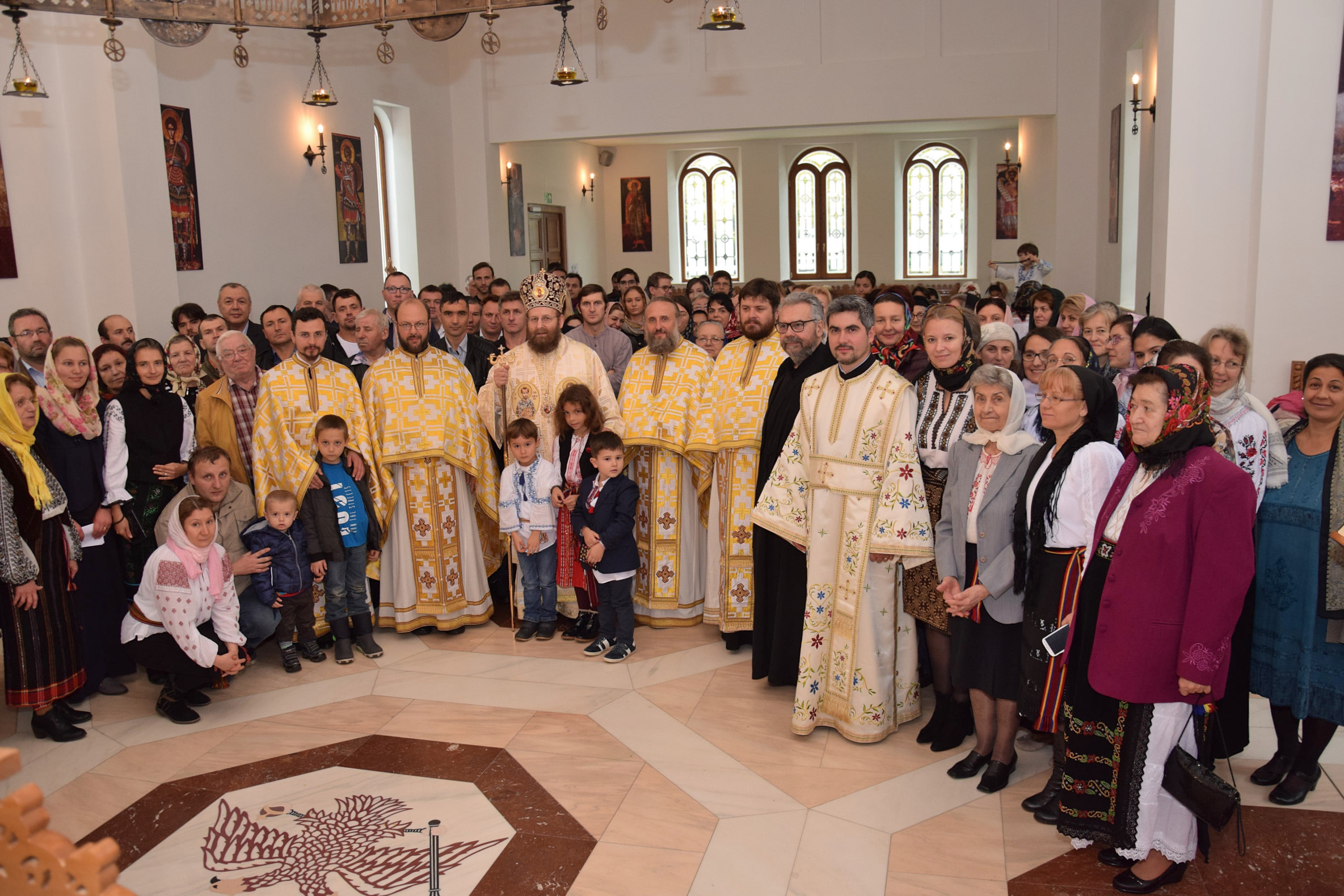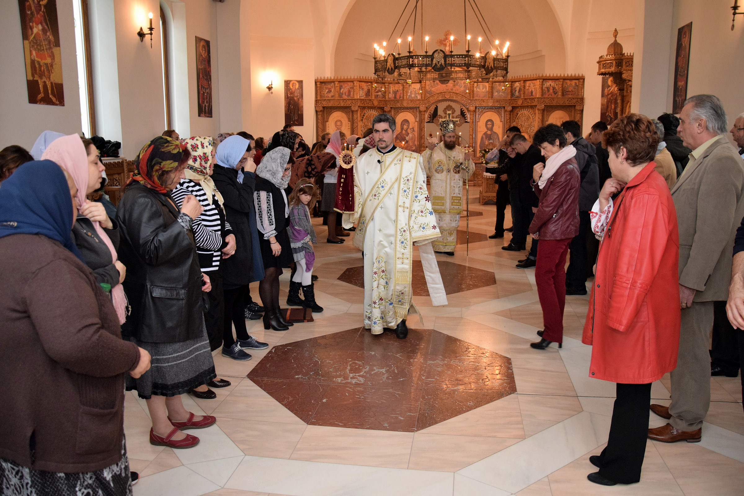 Parohia ortodoxă română din Berlin a sărbătorit sâmbătă, 14 octombrie 2017, hramul paraclisului „Sf. Cuvioasă Parascheva”. Credincioșii ortodocși din parohia noastră au avut bucuria să primească vizita pastorală a Preasfințitul Părinte Sofian Braşoveanul, Episcop-vicar al Arhiepiscopiei Ortodoxe Române a Germaniei, Austriei şi Luxemburgului. PS Sofian a săvârșit Sf. Liturghie împreună cu Părintele protoiereu Ioan Forga (Parohia din Leipzig), Părintele Ieromonah Athanasie Ulea (Parohia din Chemnitz), Părintele Sebastian Schipor (Parohia din Dresda), Părintele Protosinghel Clement Lodroman, parohul comunității din Berlin si diaconul Ioan Bogdan Negru, rostind si cuvântul de învăţătură. După Sfânta Liturghie, părintele paroh Clement Lodroman a invitat pe cei prezenți la agapa organizată de credincioșii parohiei cu ocazia acestei sărbători.