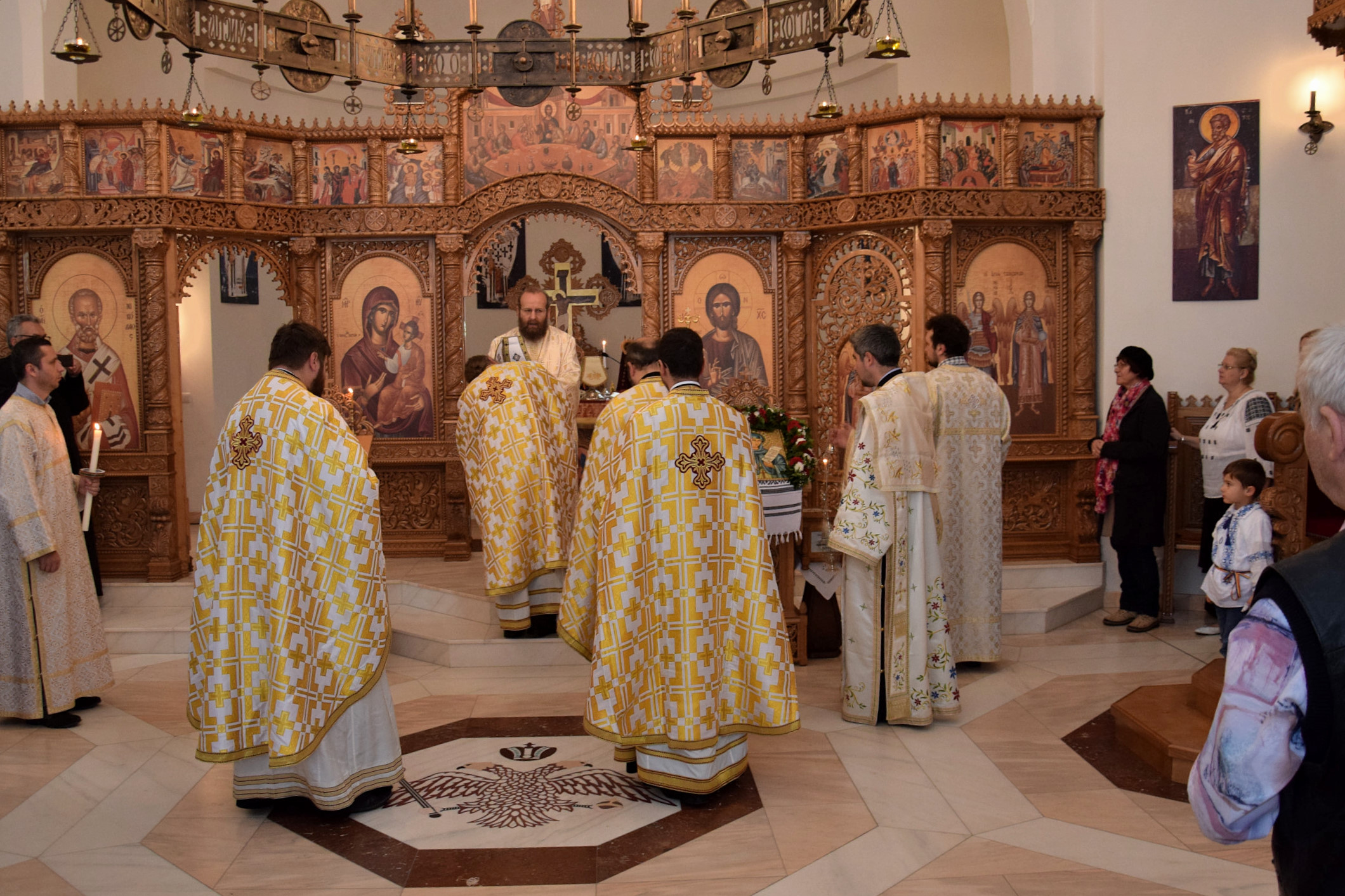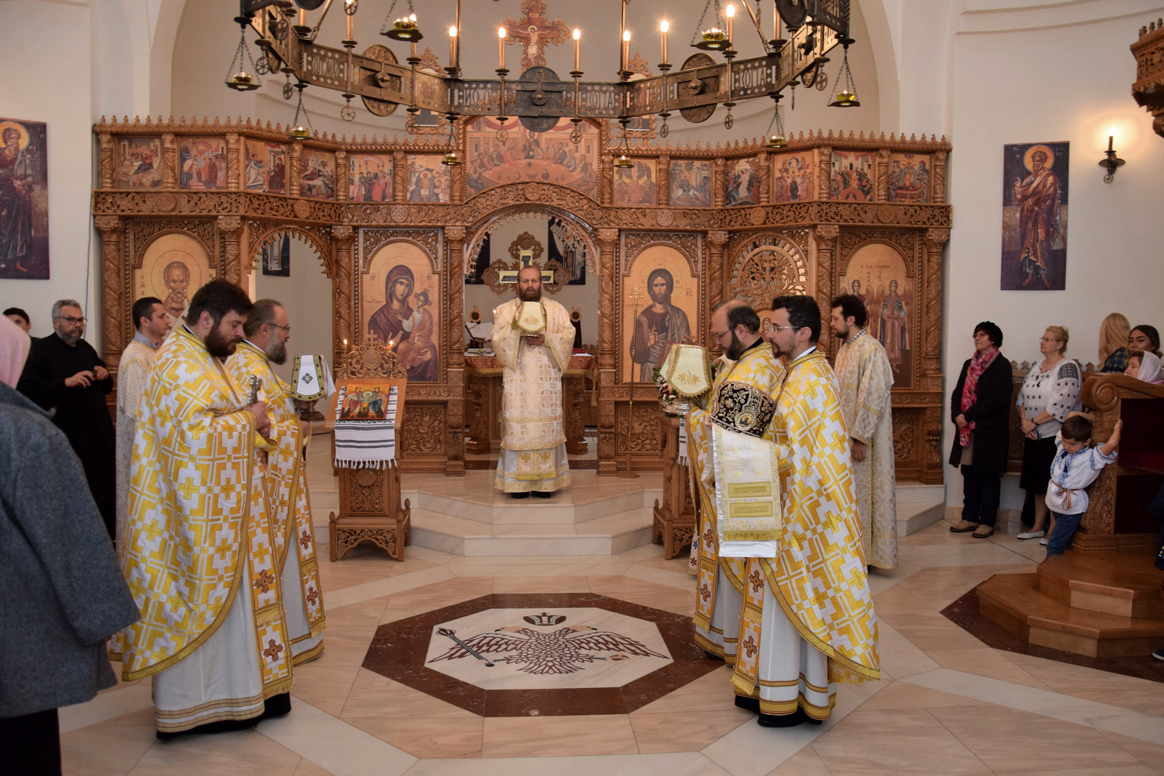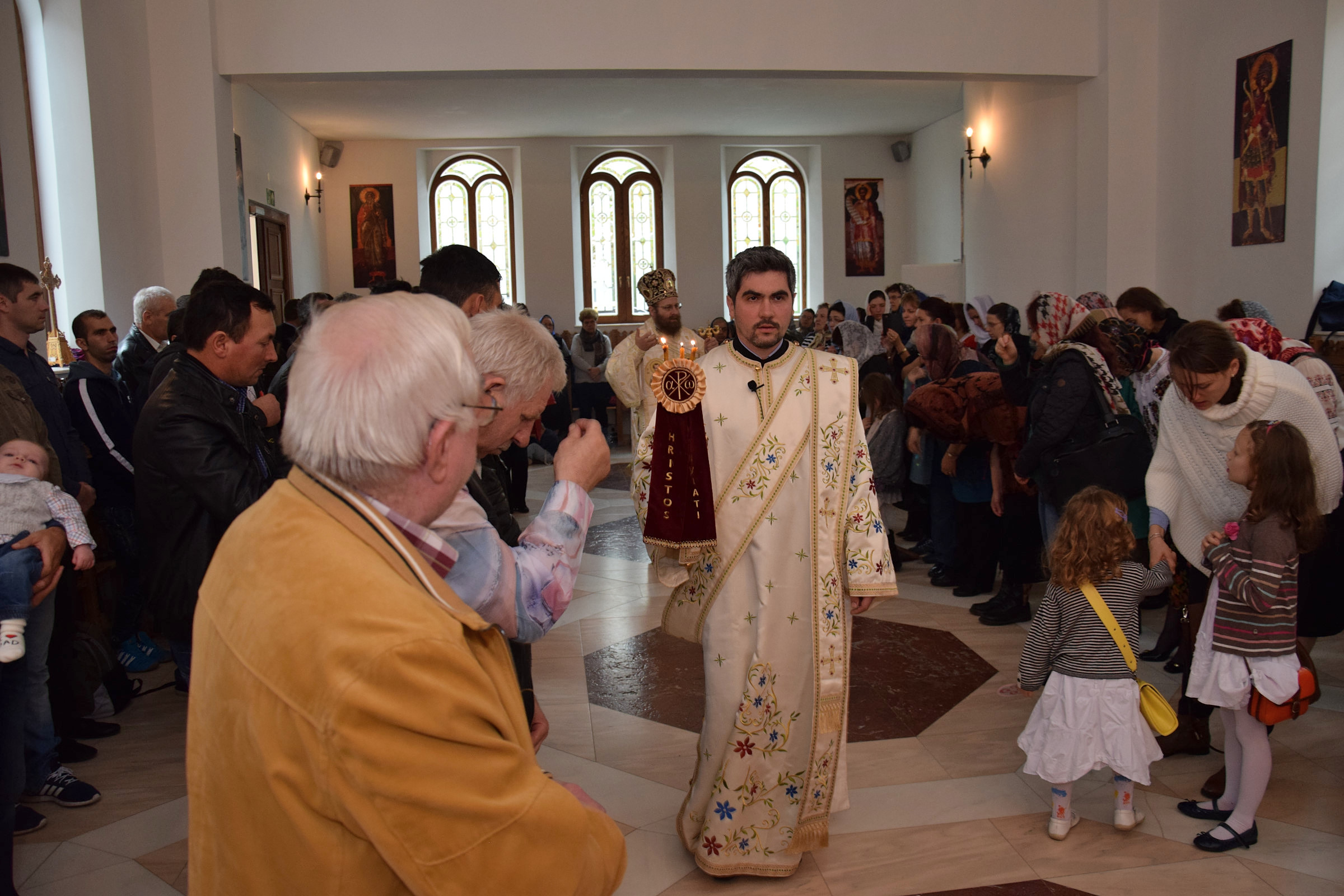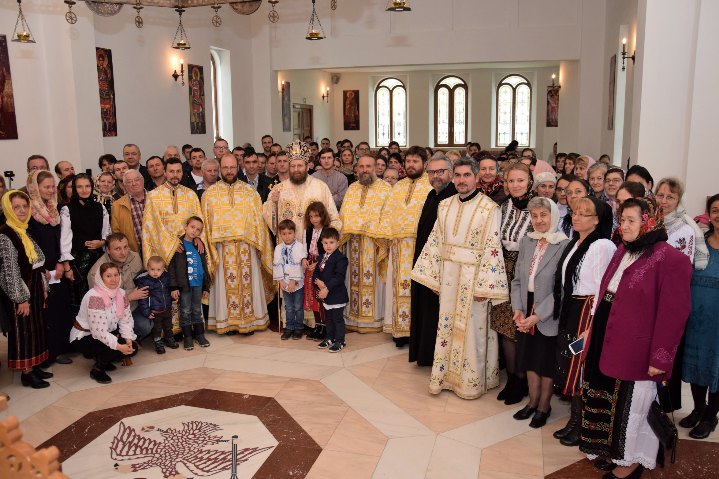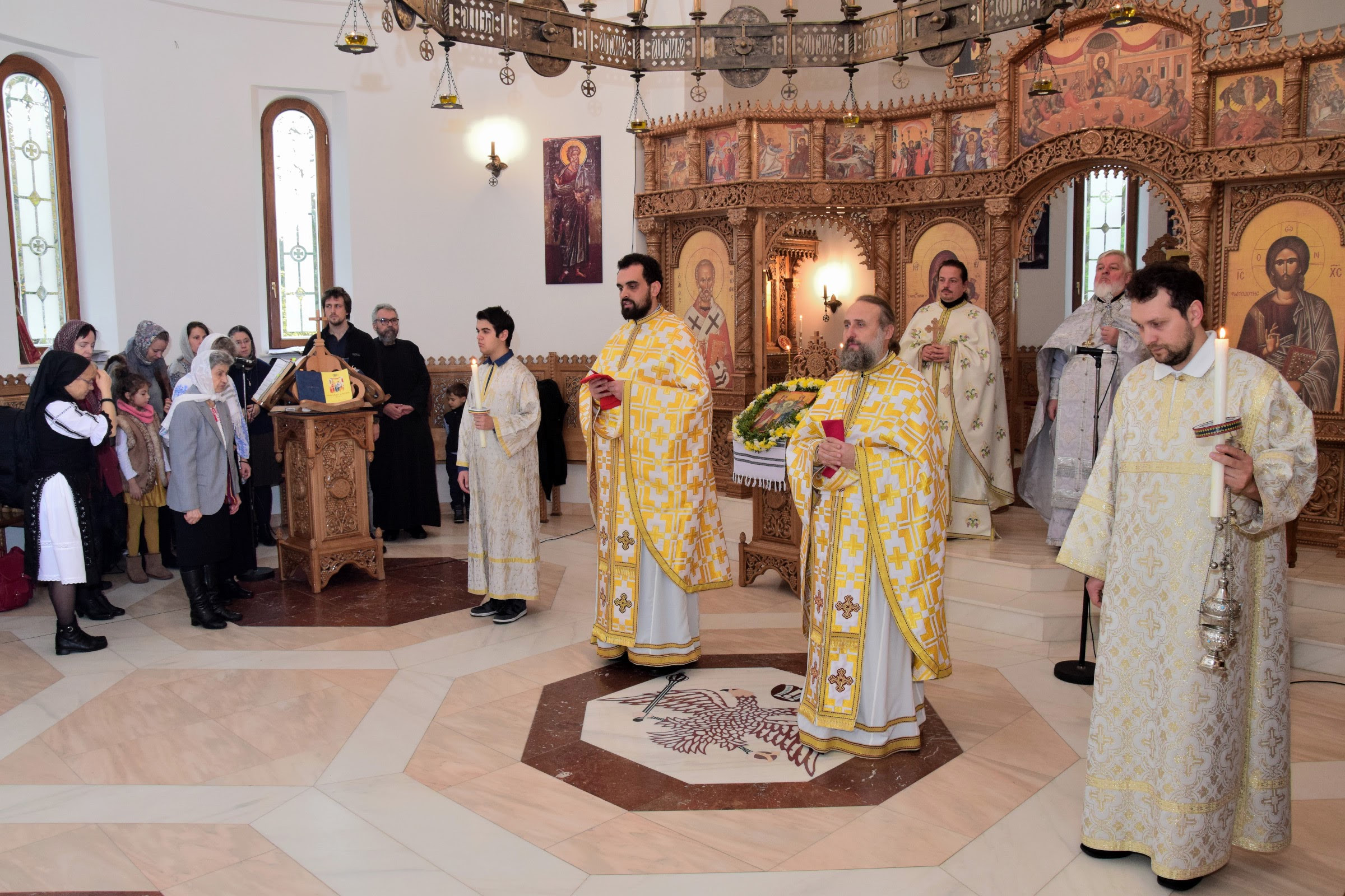 Parohia ortodoxă română din Berlin a sărbătorit sâmbătă, 14 octombrie 2017, hramul paraclisului „Sf. Cuvioasă Parascheva”. Credincioșii ortodocși din parohia noastră au avut bucuria să primească vizita pastorală a Preasfințitul Părinte Sofian Braşoveanul, Episcop-vicar al Arhiepiscopiei Ortodoxe Române a Germaniei, Austriei şi Luxemburgului. PS Sofian a săvârșit Sf. Liturghie împreună cu Părintele protoiereu Ioan Forga (Parohia din Leipzig), Părintele Ieromonah Athanasie Ulea (Parohia din Chemnitz), Părintele Sebastian Schipor (Parohia din Dresda), Părintele Protosinghel Clement Lodroman, parohul comunității din Berlin si diaconul Ioan Bogdan Negru, rostind si cuvântul de învăţătură. După Sfânta Liturghie, părintele paroh Clement Lodroman a invitat pe cei prezenți la agapa organizată de credincioșii parohiei cu ocazia acestei sărbători.