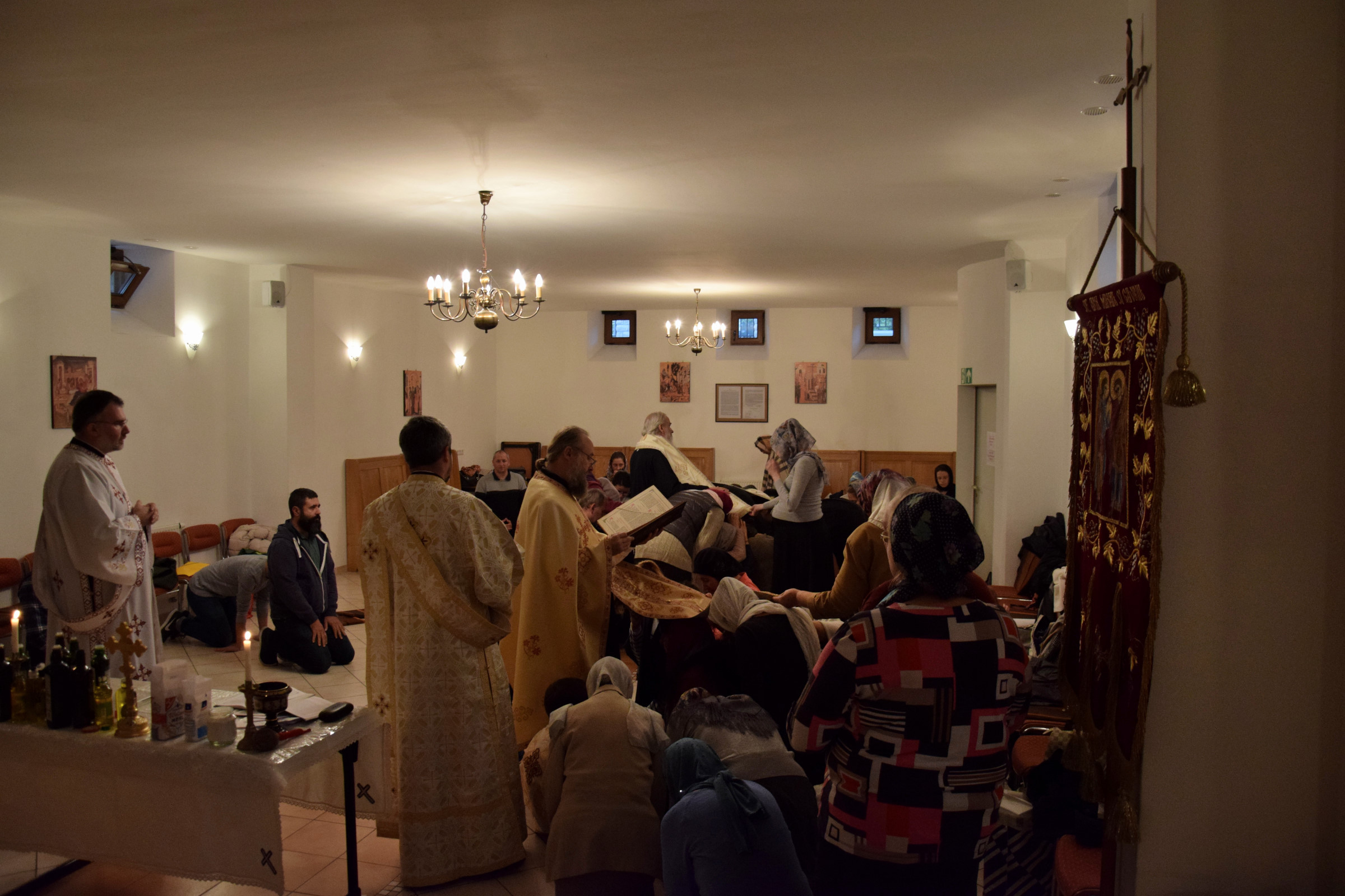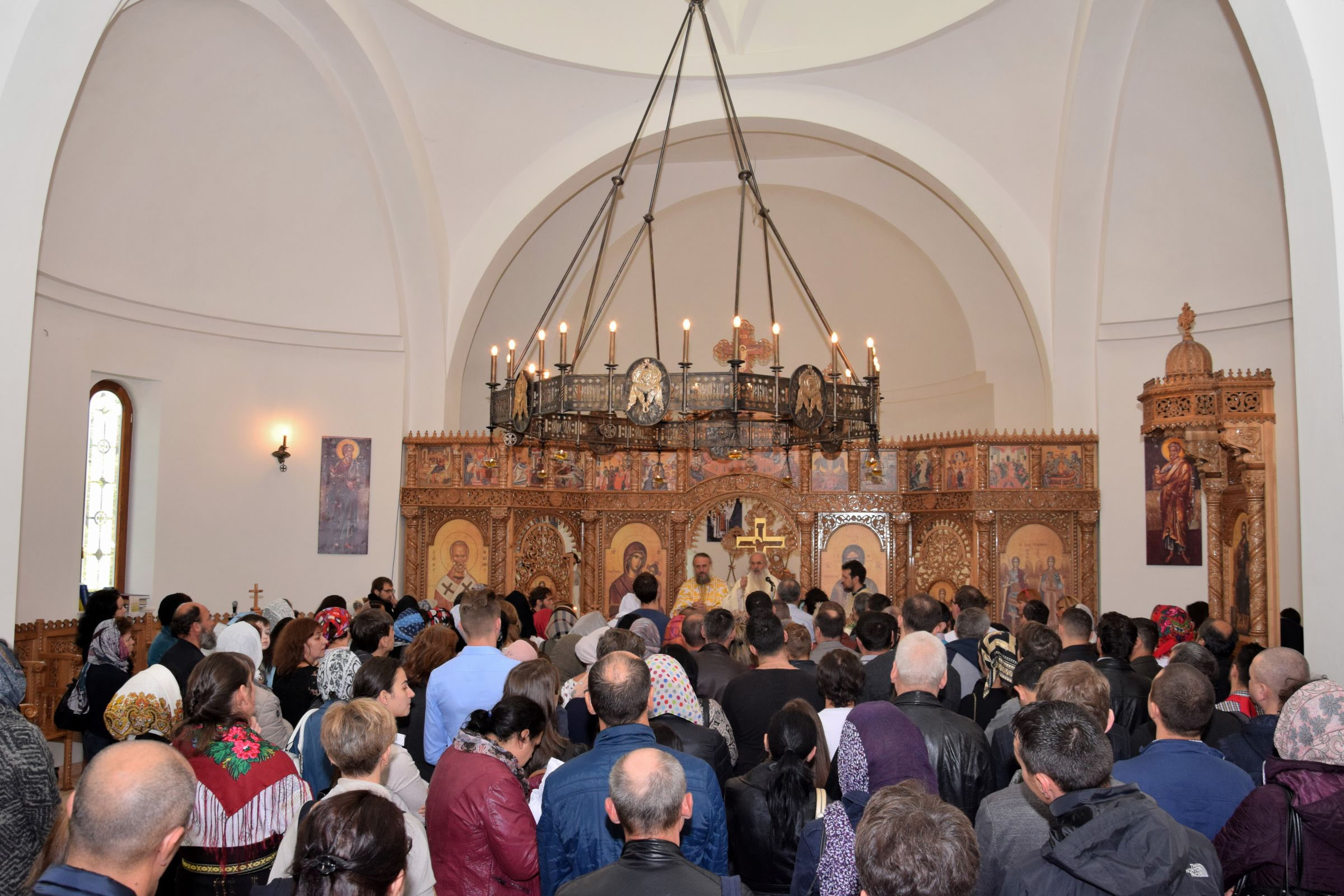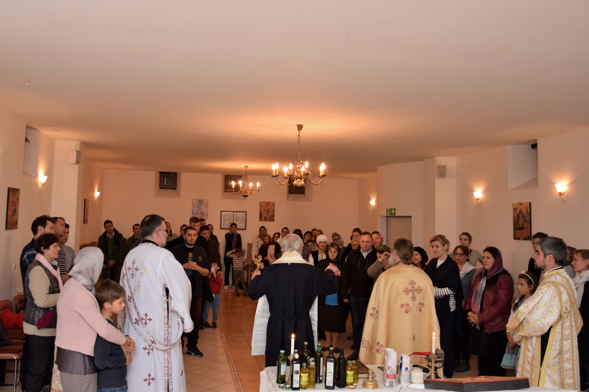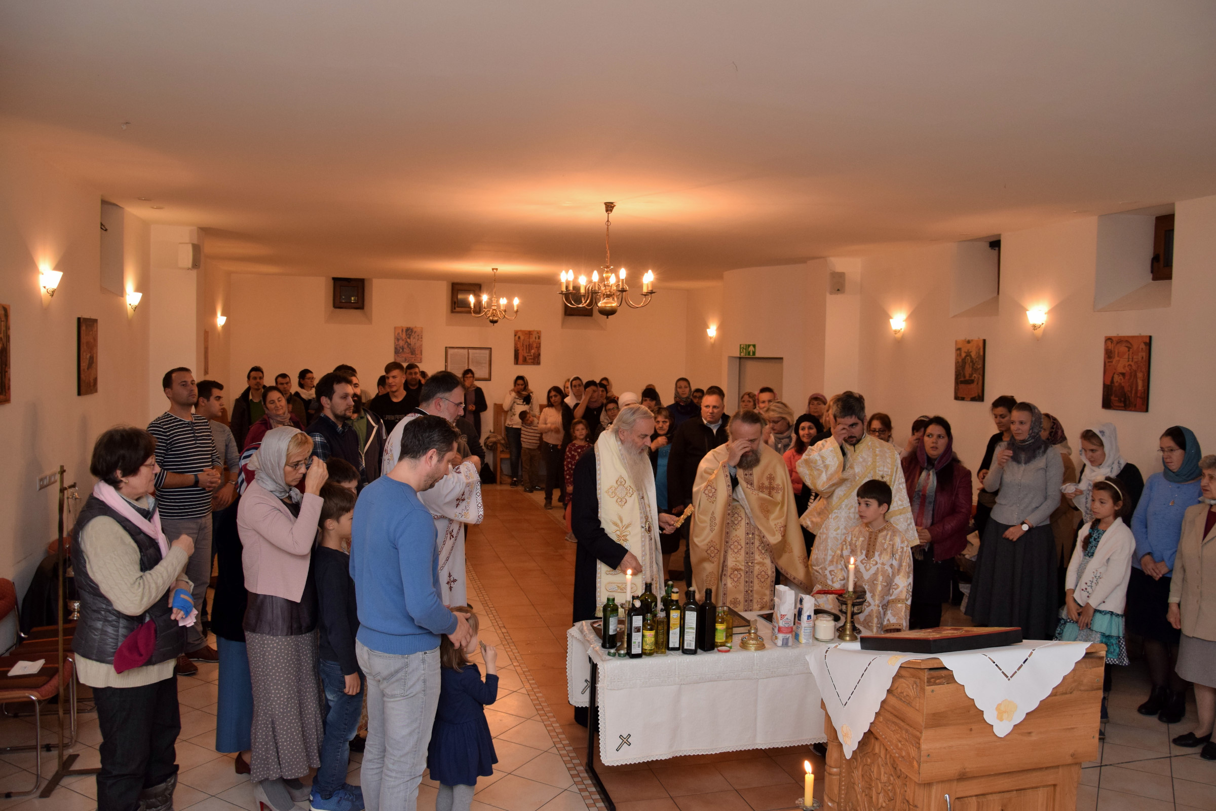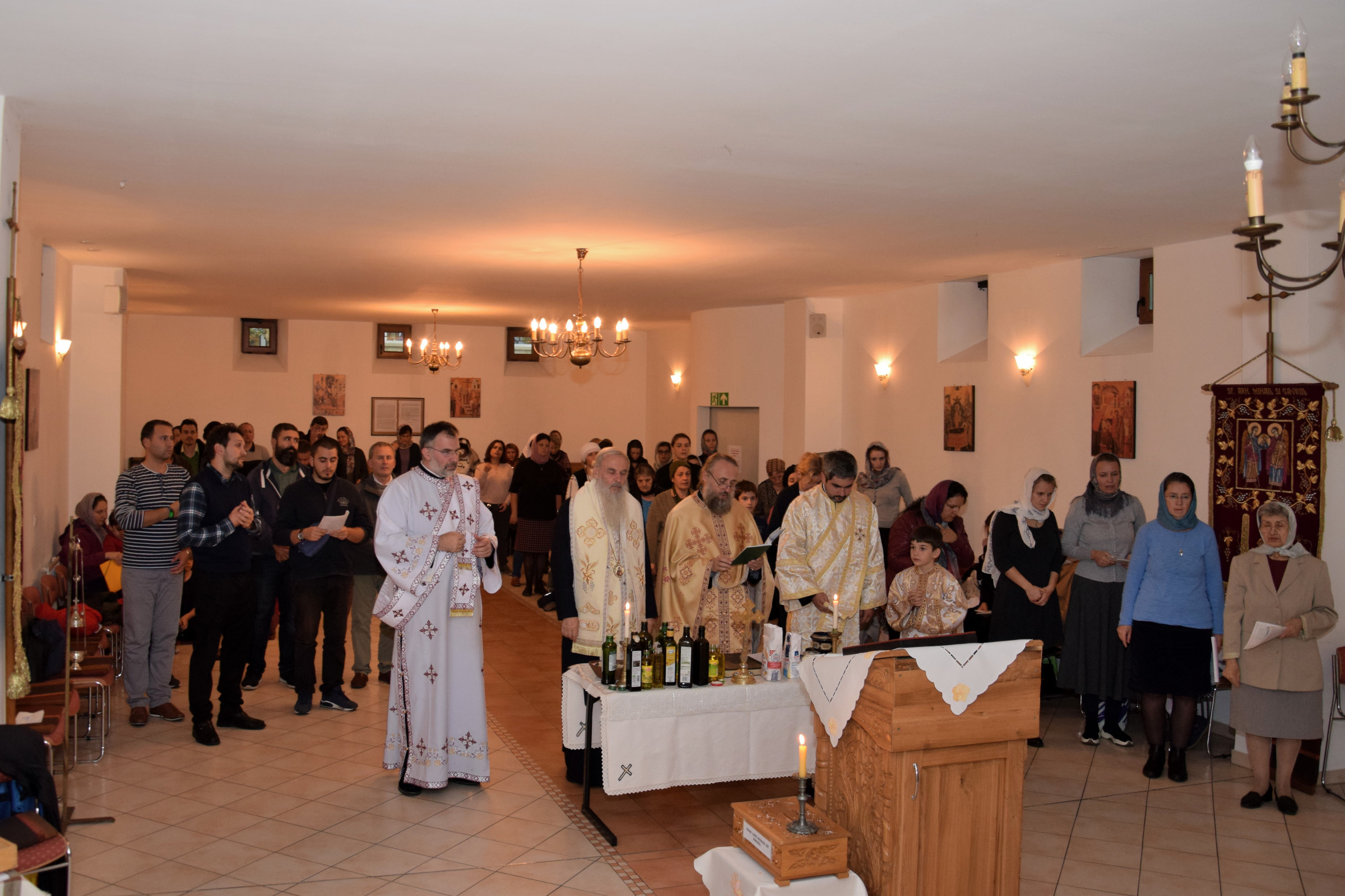 Credincioșii din parohia noastră au avut bucuria să primească, în zilele de 28 și 29 Septembrie 2018, vizita pastorală a Înaltpreasfințitului Părinte Mitropolit Serafim. ÎPS Serafim a săvârșit, în seara zilei de 28.09.2018, Slujba sfântului Maslu împreună cu Părintele Protosinghel Clement Lodroman, parohul comunității din Berlin și cu diaconii Ionuț Bancilă și Ioan Bogdan Negru. A urmat o seară duhovnicească, în care ÎPS Serafim a raspuns întrebărilor credincioșilor, legate de viața creștină. Sâmbătă, 28.09.2018, Înaltpreasfințitului Părinte Mitropolit Serafim a a săvârșit Sfânta Liturghie.