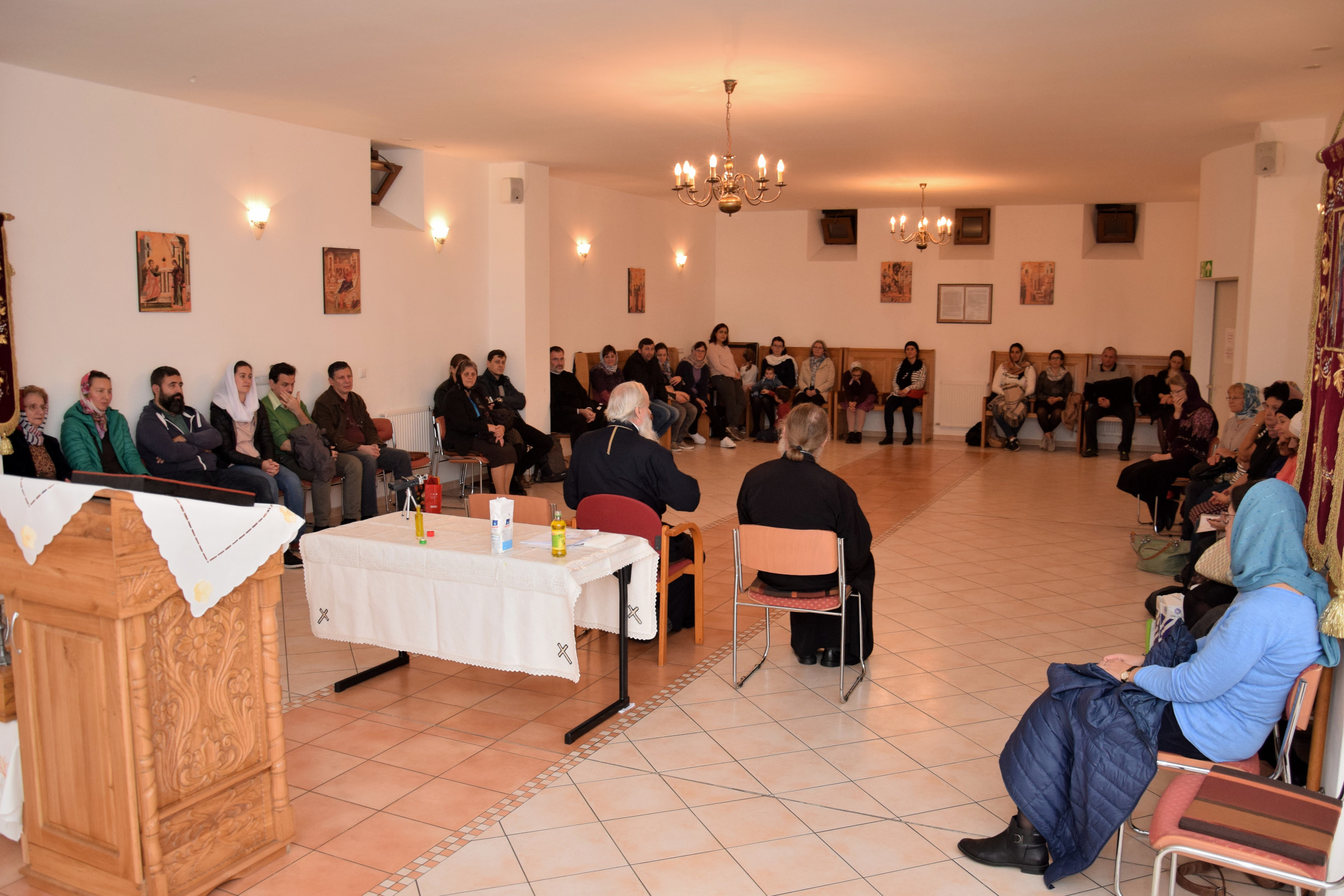 Părintele ieromonah Petru Pruteanu a susținut în 24.09.2018, la Parohia “Sfinţii Arhangheli Mihail şi Gavriil” din Berlin, o prelegere duhovnicească despre „Sfânta Liturghie”. Părintele Pruteanu, cunoscut teolog specialist în Teologia Liturgică, este slujitor în diaspora din Portugalia și a publicat numeroase articole și lucrări referitoare la studiul slujbelor Bisericii.