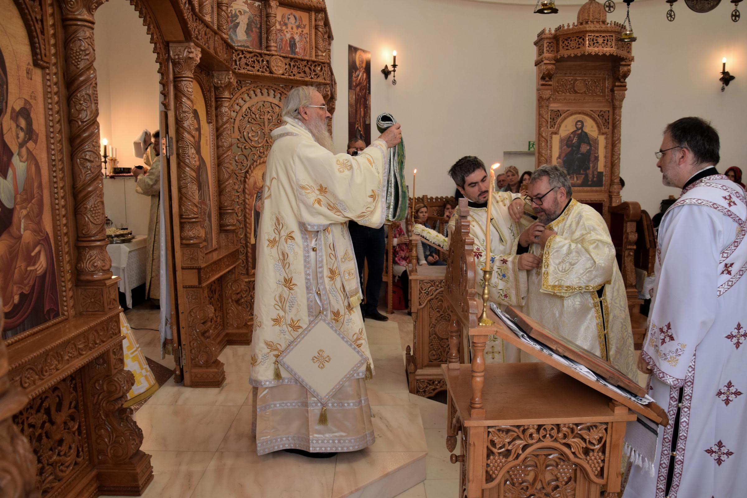 Înaltpreasfințitul Părinte Mitropolit Serafim a făcut sâmbătă, 13.10.2018, și duminică, 14.10.2018, o vizită pastorală în Parohia română ”Sfinții Arhangheli Mihail și Gavriil” din Berlin. Înaltpreasfinția Sa a slujit sâmbătă Vecernia împreună cu Părintele Protosinghel Clement Lodroman, Pr. Ionuț Dragoș Manu (Parohia „Sfinții Împărați Constantin și Elena” din Berlin), Pr. Teodor Mustea (Parohia „Sf. Proroc Ilie Tesviteanul” din Halle-Saale), Pr. diacon Ionuț Bancilă. A urmat o seară duhovnicească, în cursul căreia ÎPS Serafim a răspuns întrebărilor credincioșilor.