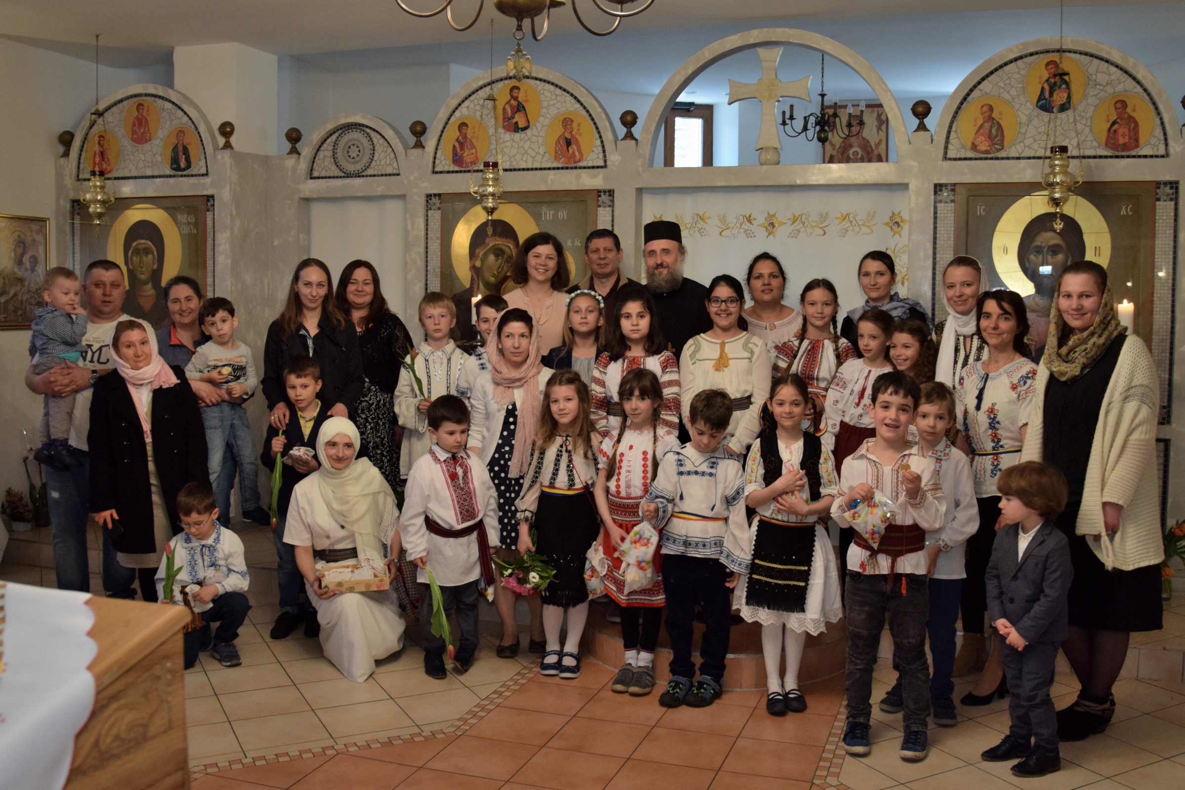 În Duminica Tomii (15.04.2018), copiii din parohia noastră au pregătit o frumoasă serbare, în care au vestit prin poezii și cântece bucuria Învierii Domnului! Muţumim doamnelor Sanda Selin, Mihaela Lunguran și Cristina Goretzko pentru îndrumarea copiilor și alcătuirea programului. De asemenea mulţumim parinţilor care au ajutat la pregătirea serbării și au avut emoţii mai mari decât cei mici.